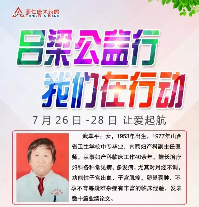 因此,山西同仁康大藥房7月26日-28日在孝義藥房特邀孝義知名專家開展“關(guān)愛健康 服務(wù)百姓”公益活動(dòng),讓愛的光芒照耀在每一個(gè)人的臉上,讓愛的溫暖融入每一個(gè)人的胸懷,讓愛的力量戰(zhàn)勝一切病魔。